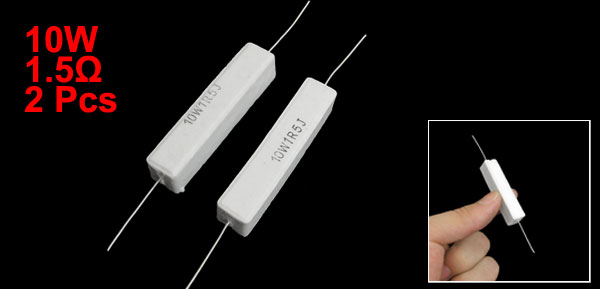 Product Name Cement Resistor Body Material Cement Power 10W Resistance 1.5Ω Body Size (Approx.) 49 x 11 x 10mm/ 1.9" x 0.43 x 0.39"(L*W*H) Lead Diameter (Approx.) 0.8mm/ 0.031" Lead Length (Approx.) 26mm/ 1.02"(Max.), 24mm/ 0.94" (Min.) Color White Weight 22g Package Content 2 Pcs x Cement Resistors - Reviews