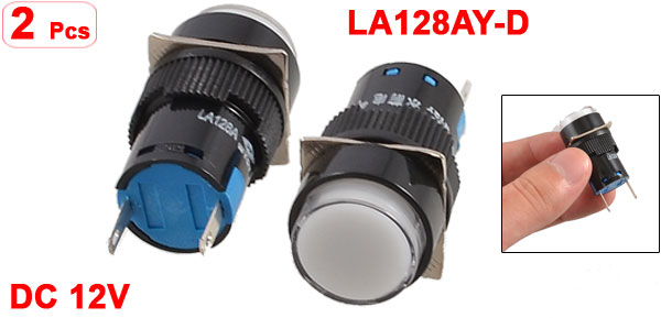Product Name Indicator Light Model No. LA128AY-D Working Voltage DC 12V Light Color White Shell Color Black, White, Blue Terminals Quantity 2 Pins Mounting Hole Diameter 16mm / 0.63" Overall Size (Approx) 18 x 40mm/ 0.71" x 1.6" (D*H) Weight 14g Package Content 2 Pcs x Indicator Light - Reviews