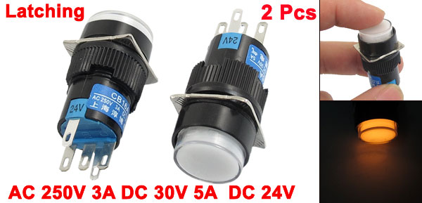 2 Pcs White Sign Round Latching Push Button Switch NO NC 5P 5 Pin 24V DC Lamp