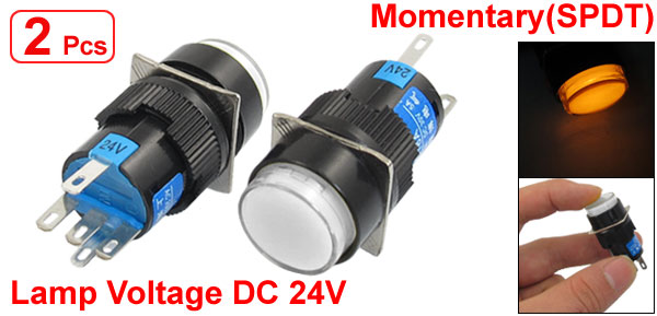 2 Pcs White Sign Round Momentary Push Button Switch NO NC 5P 5 Pin 24V DC Lamp