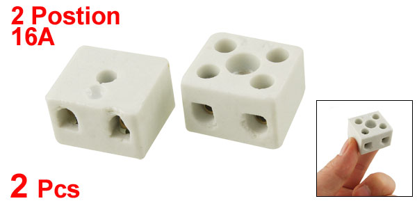 2 Pcs Wire Connector 2 Position Dual Row Ceramic Terminal Block 16A