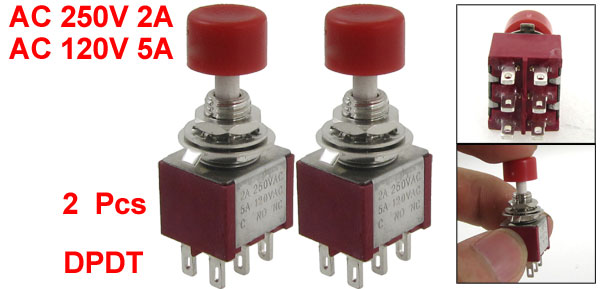 2 Pcs x AC 2A/250V 5A/120V 6 Pin DPDT Momentary Push Button Switch 6mm 1 NO 1 NC