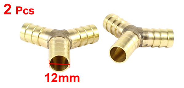 Product Name Hose Barb Design Y Shape, 3 Ways Hose Outer Diameter 12mm/ 0.47" Total Length 47 x 47 x 12mm/ 1.85" x 1.85" x 0.47"(L*W*T) Material Brass Color Gold Tone Net Weight 30g Package Content 2 x Hose Barbs - Reviews