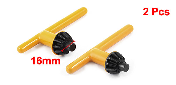 2 Pcs Yellow 5/8" Gear Dia 11 Teeth T Shaped Grip Metal Drill Chuck Key