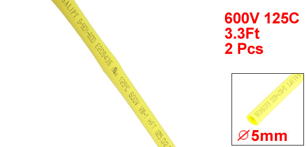 2 Pcs Yellow 5mm Dia 2:1 Polyolefin Wire Wrap Heat Shrinkable Shrink Tubing 1M