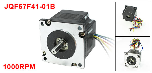 Product Name Stepping Motor Model No. JQF57F41-01B Step Angle 1.8° Rated Current 1.5A Motor Resistant 1.5Ohm Motor Inductance 1.3mH Rated Speed 1000RPM Rated Torque 3Kg.cm Shaft Diameter 6.5mm/ 0.26" Motor Part Size (Approx.) 5.5 x 5.5 x 4.5cm/2.2" x 2.2" x 1.8"(L*W*H) Cable Length 44cm / 17.3" Mouting Hole Dia 5mm/0.2" Material Metal, Plastic, Electronic Parts Color Black, Silver Tone Weight 572g Package Content 1 x Stepping Motor