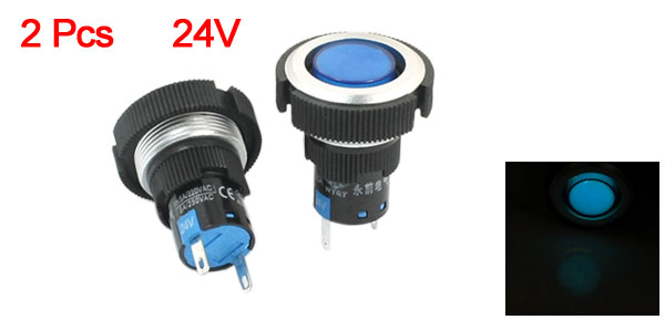 2 Pieces 24V 22mm Dia Thread 2 Terminals Pilot Signal Indicator Light Blue