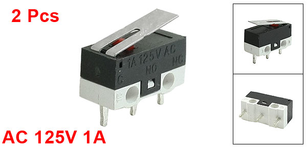 Product Name Micro Switch Actuator Type Low-Force Lever Actuator Action Momentary Contact Type SPDT 1 NO 1 NC 1 Com Terminal Type Plug-in Pins Rated Power AC 125V 1A Lever Length 13mm/0.5" Mounting Hole Dia 2mm / 0.08" Pin Distance 5mm(C---NO) 5mm(NO---NC) Body Size 12 x 5.5 x 6cm / 0.47" x 0.22" x 0.24"(L*W*H) Material Metal, Plastic Color Black Net Weight 2g Package Content 2 x Micro Switch - Reviews