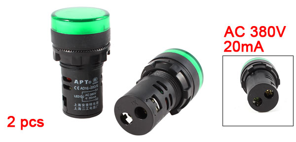 2 Pieces AD16-22D/S Energy Saving LED Indicator Signal Light Green AC380V 20mA