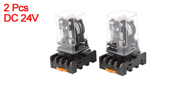 2 Pieces JTX-2C DC 24V 8 Pins DPDT Coil Power Relay w 35mm DIN Rail Socket