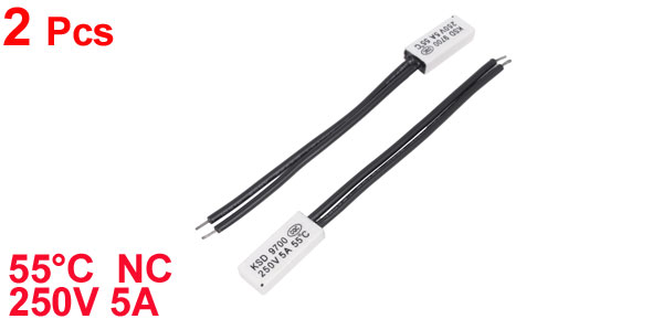 Rated Power 250V 5A Active Temperature 55°C Lead Wire Length 7.3cm / 2.9" Head Dimension 20 x 7.5 x 3.5mm/0.78" x 0.3" x 0.14"(L*W*H) Material Bimetal ,Plastic,Stainless Steel Main Color White,Black Net Weight 6g Package Content 2PCS x Temperature Control Switch - Reviews
