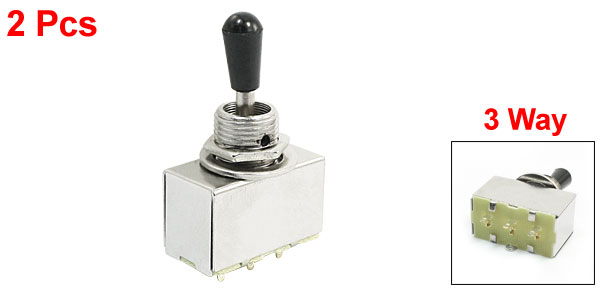 2 Pieces Panel Mount Black Knob Chrome Box 3 Way Toggle Switch for Electric Guitar