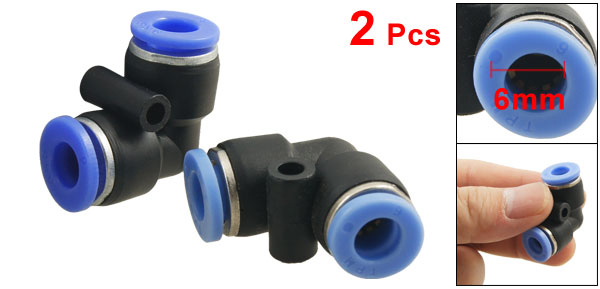 Product Name Pneumatic Quick Fittings Type 6mm to 6mm ( Right Angle) Material Plastic Dimension (Approx) 2.5 x 2.5 x 1.2cm/ 1" x 1" x 0.5" (L*W*H) Color Black, Blue Weight 12g Package Content 2 x Pneumatic Quick Fittings - Reviews