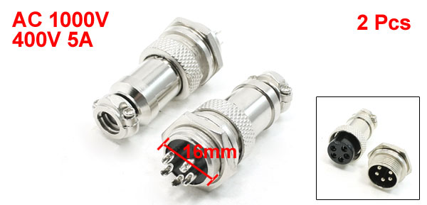 2 Pieces Universal Aviation Plug 16mm 5Pin Male Female Connector