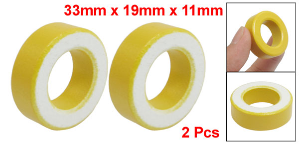 Product Name Ferrite Ring Each Size 33 x 19 x 11mm/ 1.3" x 0.7" x 0.4" (Outside Dia.*Inner Dia.*T) Material Iron Color Yellow, White Net Weight 83g Package Content 2 x Ferrite Ring - Reviews