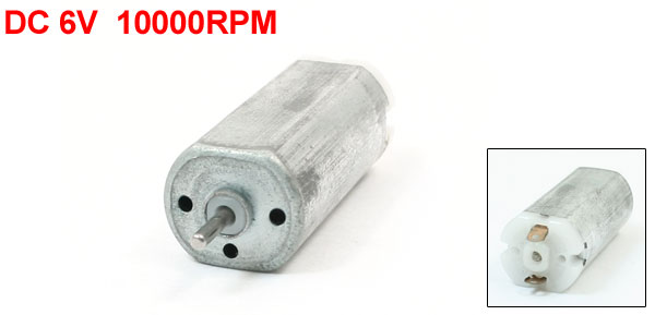 Product Name DC Motor Rated Voltage DC 6V Speed 10000RPM Body Size 31 x 14 x 12mm/ 1.2" x 0.55" x 0.47"(L*W*T) Shaft Diameter 1.5mm / 0.06" Main Color Silver Tone Material Metal Weight 15g Package 1 x DC Motor - Reviews