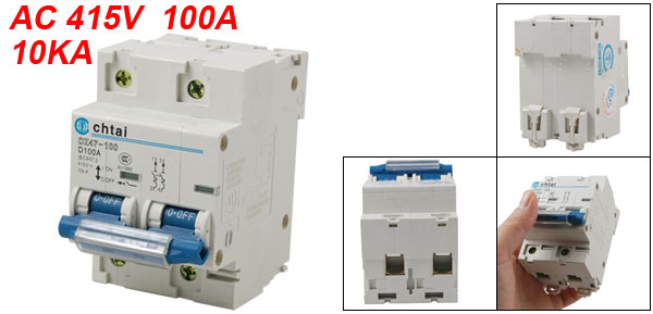 Product Name Miniature Circuit Breaker Model Number DZ47-100 C10 Rated Circuit Breaking Capacity 10KA Rated Current 100A Rated Voltage AC415V Instantaneous Release Type D Type Number of Poles 2 Overall Size (Approx.) 8.1 x 5.3 x 7.5cm/ 3.2" x 2.1" x 3"(L*W*H) Material Plastic, Electric Components Color As Picture Shown Weight 303g Package Content 1 x Miniature Circuit Breaker - Reviews