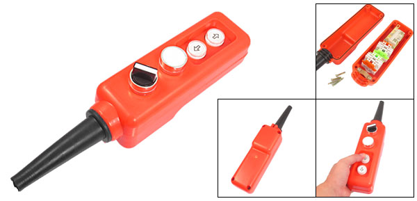 Product Name Hoist Pushbutton Switch Model No. COB COJ2104 Button Momentary Yellow Button, 2 Position Rotary Selector Switch, Momentary Up and Down Push Button Selector Switch Position 2 Position IEC 337 Ui 660V Ith 10A Main Body Size 20 x 5.8 x 6.5cm / 7.9" x 2.3" x 2.6"(L*W*H) Insulating Tube Length 10.2cm / 4" Fit Cable Diameter 1.1cm / 0.43" External Material Plastic, Rubber Color Orange Red, White Net Weight 339g Package Content 1 x Hoist Pushbutton Switch - Reviews