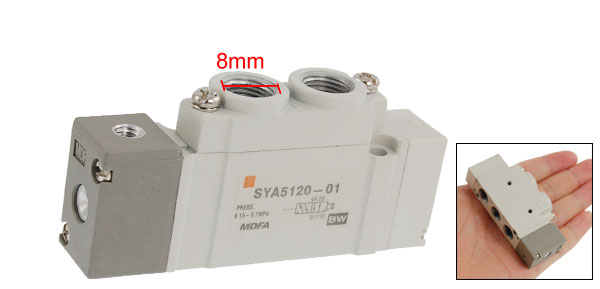 Product Name Air Operated Valve Model SYA5120-01 Actuation Type 2 Position Single Thread Port Size 4mm/ 1/8" One-touch Fitting Port Size 8mm/ 1/4" Operating Pressure Rage 0.15-0.7MPa