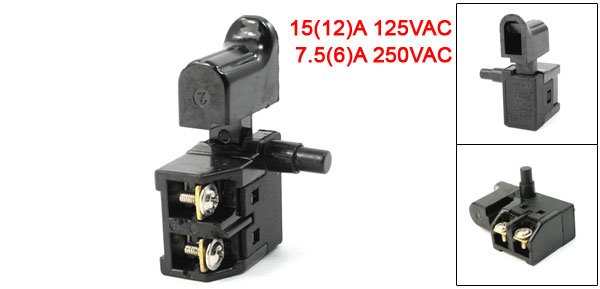 Product Name Trigger Switch Model No. SGEL115CDY-2 Rating 15(12)A 125VAC 7.5(6)A 250VAC Contact Type Maual Operation Lock, SPST Total Size 5 x 3 x 2.8cm/2" x 1.2" x 1.1"(L*W*T) Material Plastic, Metal Color Black Weight 19g Package 1 Pcs x Trigger Switch - Reviews