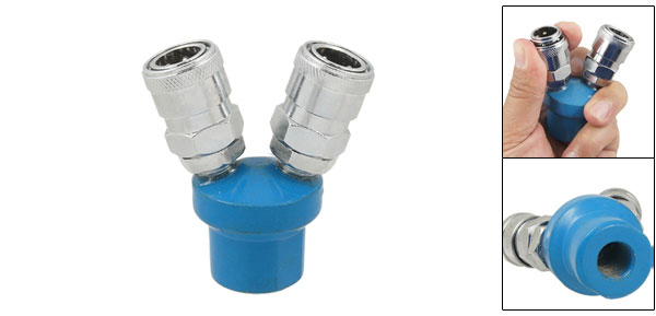 Product Name Multi Way Pass Quick Coupler Material Alloy Color Silver Tone, Blue Air Outlet Number 2 Air Inlet Diameter 13mm Screwthread Diameter 12mm Size 7 x 6.5 x 4cm / 2.8" x 2.6" x 1.6"(L*W*T) Net Weight 155g Package Content 1 x Multi Way Pass Quick Coupler - Reviews