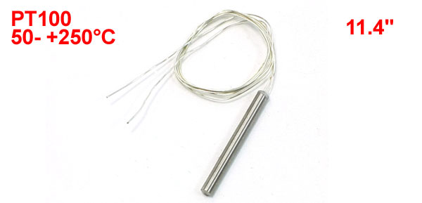 Product Name Resistance Temperature Sensor Transfer Type PT100 Temperature Range -50- +250°C Probe Size 3 x 30mm/ 0.12" x 1.2"(D*L) Cable Length 29cm/11.4" Materials Stainless Steel Color Silver Tone Net Weight 3g Package Content 1 x Resistance Temperature Sensor - Reviews