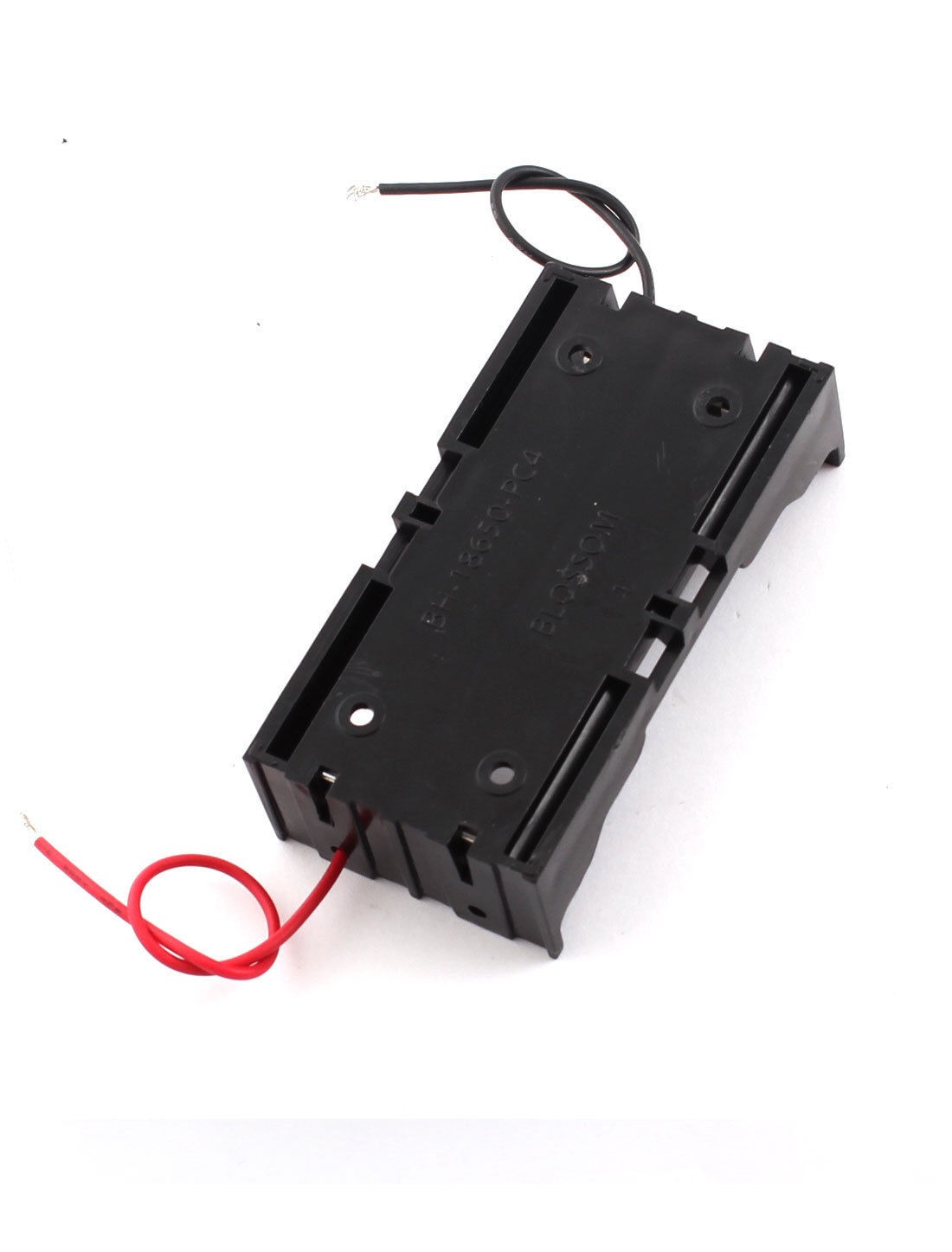 2-Wired Lead Black Plastic 2 x 3.7V 18650 Battery Holder Box