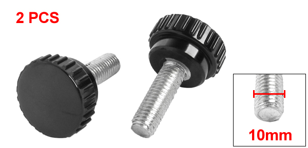 2 x 10mm Male Thread Diameter Screw On Type Knurled Knobs Black