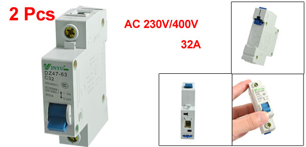 Product Name Miniature Circuit Breaker Model No. DZ47-63 C32 Exrternal Material Plastic, Metal Rated Voltage AC 230V/400V Rated Current 32A Breaking Capacity 4500A Total Size (Approx.) 77 x 18 x 70mm/ 3" x 0.7" x 2.7" (L*W*T) Number of Poles 1 Mount Type DIN Rail Weight 179g Package Content 2 x Miniature Circuit Breaker - Reviews