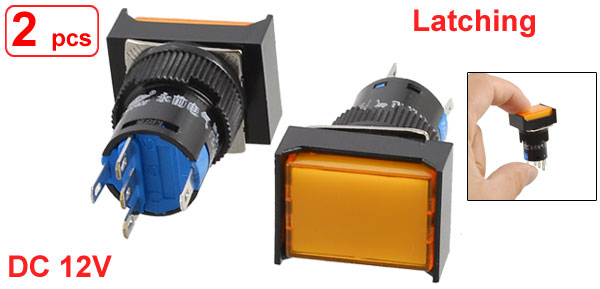 2 x 5 Pin Terminals Orange Lamp Latching Rectangular Push Button Switch DC 12V