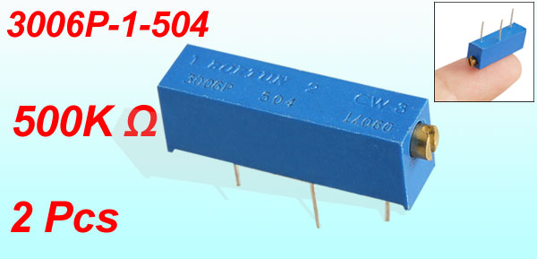 Product Name Cermet Potentiometer Model 3006P-1-504 Withstand Voltage 500V Rated Power 3/4W Resistance Value 500K Ohm Turns Number 15 Tolerance ±10% Mounting Type Through Hole(DIP) Adjustment Type Side Slot Resistive Material Cermet Temperature Coefficient ±100ppm/°C Total Size 20.6 x 4.9 x 12.2mm/ 0.8" x 0.2" x 0.5" (L*W*H)