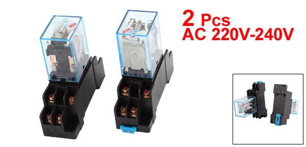 2 x AC 220V-240V Coil 8Pin DPDT 35mm DIN Rail Mount General Power Relay + Socket