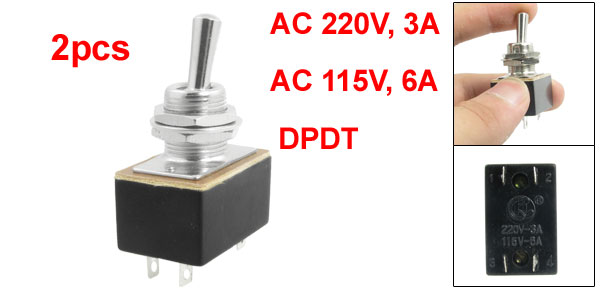 2 x AC 220V 3A 115V 6A 2P1T DPDT On/On 2 Position 4 Pins Toggle Switch
