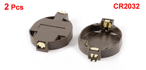 2 x Brown Plastic Housing CR2032 Button Cell Battery Sockets Holder Case