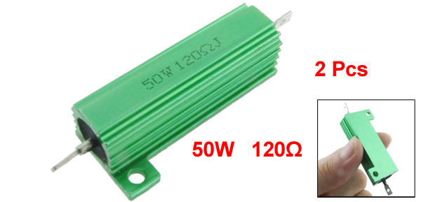 2 x Chassis Mounted 50W 120 Ohm 5% Aluminum Case Wirewound Resistors Green