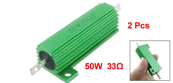 2 x Chassis Mounted 50W 33 Ohm 5% Aluminum Case Wirewound Resistors Green