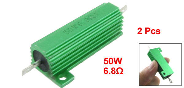 Product Name Aluminum Housed Resistor Resistance Value 6.8Ω Power Rating 50W Resistance Tolerance ± 5% (J) Body Size 49 x 15mm/ 1.9" x 0.59" (L*D) Mounting Hole Diameter 3.4mm/ 0.13" Total Size 72 x 22 x 15mm/ 2.8" x 0.86" x 0.59" (L*W*T) Casing Material Aluminum Color Green Weight 48g Package Content 2 Pcs x Aluminum Housed Resistors - Reviews