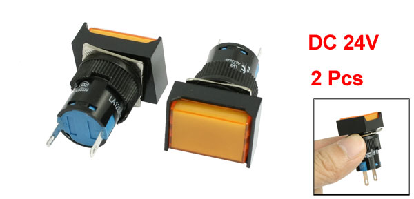 Details2 x DC 24V 16mm Orange Rectangular Cap Indicator Light Accident Signal Lamp  Product Name Indicator Light Model No. LA128AJ-D Working Voltage DC 24V Light Color Orange Terminals 2 Pins Mounting Hole Diameter 16mm / 0.63" Overall Size 24 x 18 x 40mm/ 0.94" x 0.7" x 1.6" (L*W*T) Weight 16g Package Content 2 Pcs x Indicator Light