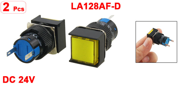 2 x DC 24V 16mm Panel Square Yellow Power Indicator Light Signal Lamp Pilot