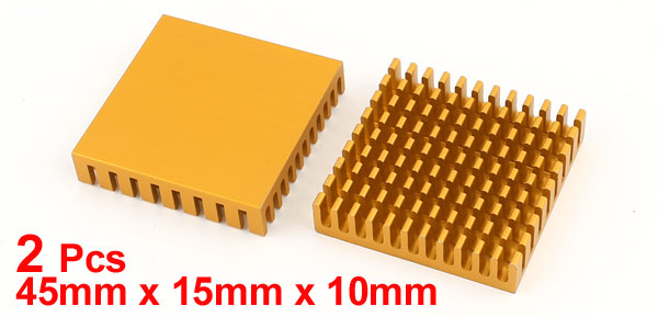2 x Gold Tone Aluminum Heat Sink Heatsink 45mm x 15mm x 10mm