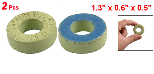 Product Name Ferrite Core Material Iron Color Green, Blue Overall Size 33.4 x 16 x 11.5mm/ 1.3" x 0.6" x 0.5"(Outside Dia.*Inner Dia.*T) Net Weight 100g Package Content 2 x Toroid Ferrite Core - Reviews