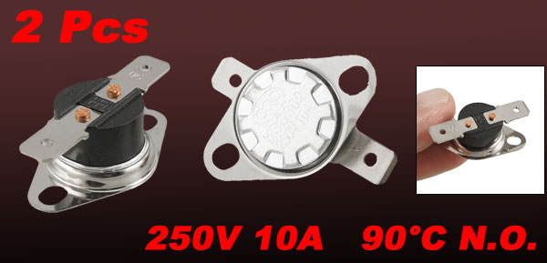 Product Name Temperature Switch Thermostat Model No. KSD302 Action Type Normal Open (N.O.) Action Temperature 90C/194F Voltage 250V 10A Circuit Resistance 50 Mohm Insulation resistance 100 Mohm Size (Each) 3.4 x 1.1cm / 1.3" x 0.4" (L*H) Mounting Hole Spacing 2.4cm / 0.94" Material Metal, Plastic Color Black, Silver Tone Net Weight 10g Package Content 2 x Temperature Switch Thermostat - Reviews