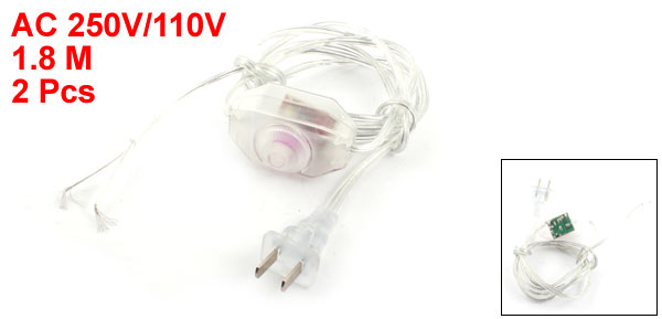 2 x Lamp Power Cord Swivel Dimmer Switch AC 250V/110V Clear US Plug 1.8M