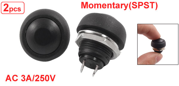 2 x Momentary SPST 2 Terminals Black Cap Push Button Switch 3A 250V AC