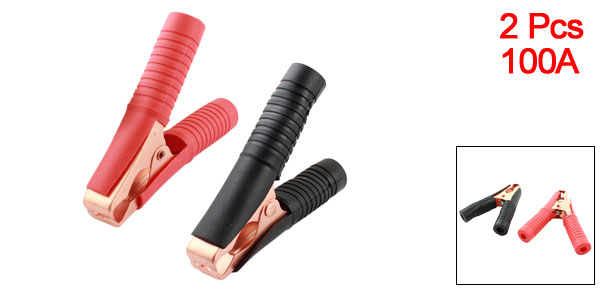 2 x Red Black Plastic Handle Insulated Alligator Clips Clamp 100A