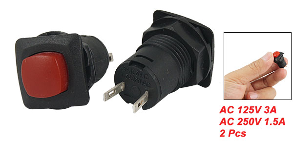 AC 250V 1.5A Color Red, Black, Silver Tone Mounting Thread Dia. 12mm Pin Pitch 6mm Button Size 0.9 x 0.9cm/ 0.3" x 0.3" (L*W) Total Size 3 x 1.5 x 1.5cm/ 1.2" x 0.6" x 0.6" (L*W*T) Material Plastic, Electric Parts Net Weight 6g Package Content 2 x Push Button Switch - Reviews