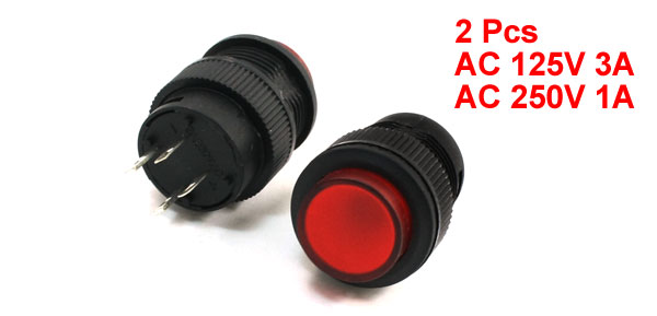 2 x Red Light SPST Momentary Push Button Switch 125VAC 3A 250VAC 1A