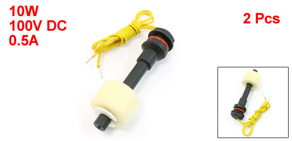 Product Name Floating Switch Model No. ZP6210 Max Contact Rating 10W Max Switching Voltage 100V DC Max Switching Current 0.5A Max Breakdown Voltage 220V DC/AC Max Carry Current 1A Max Contact Resistance 100mΩ Temperature Rating -10 / +85 °C Float Ball Material P.P Float Body Material P.P Thread Dia(Approx) 9.5mm / 0.374" Switch Body Size 23.3 x 73mm / 0.9" x 2.9"(Max D*H) Cable Length 36cm / 14.2" Color Black, off White Net Weight 30g Package Content 2 x Floating Switch - Reviews