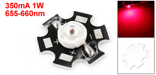 Product Name LED Emitter DC Forward Voltage 2.2-2.6V DC Forward Current 350mA Luminous Flux 20-30LM Wave Length 655-660nm Power Consumption 1W Material Electronic Parts Emitter Diameter 5mm/ 0.2'' Heat Sink Base Dia 20mm/ 0.79'' Light Color Red Net Weight 2g Package Content 1 x LED Emitter - Reviews