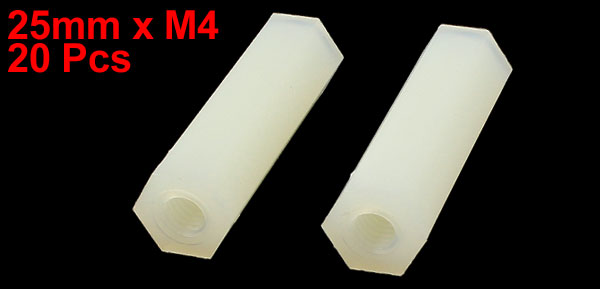 20 Pack 25mm Length M4 Female Thread Nylon Hexagonal PCB Spacer Standoff Nut